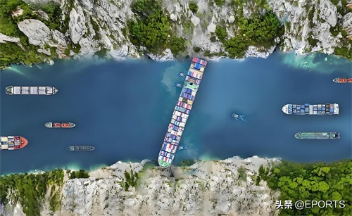 图源网络:苏伊士运河堵塞示意图