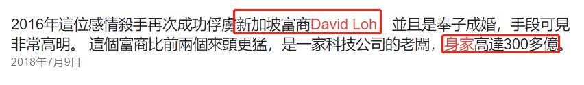 黄婉佩的老公David Loh是一名超级富豪,身家达到300亿。他虽然比黄婉佩大19岁,但两人很是投契,相识不久后就走到一起。