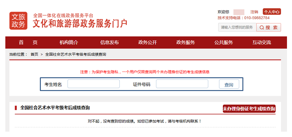 *为保护考生隐私,一个用户仅限查询两个未办理身份证的考生信息