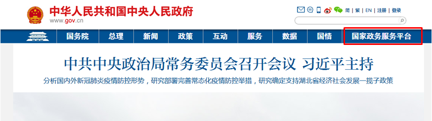 2. 进入网站后点击右上角的 "国家政务服务平台" ;