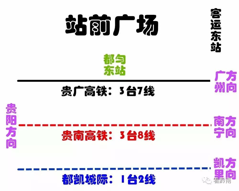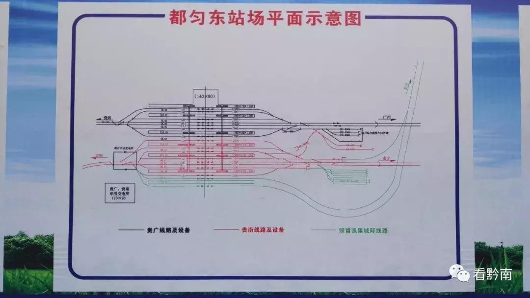 公告牌上的“都匀东站场平面示意图”则显示,都匀东站将进行扩建,除了现有的贵广高铁线路,还将新建贵南高铁3站台8股道,预留都凯城际铁路1站台2股道。