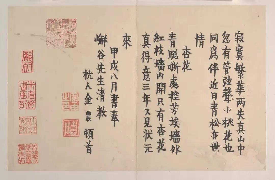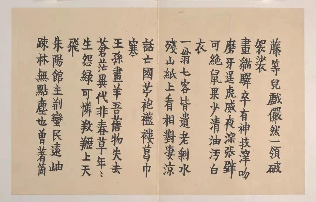 金农的楷书作品,每个字、每个点画当中,都是在一边制造矛盾,一边又是在解决矛盾的。他把点画的长短、左右的高低、字间的疏密等等,都转化成矛盾着的多个矛盾体,让书法的意趣不断产生。