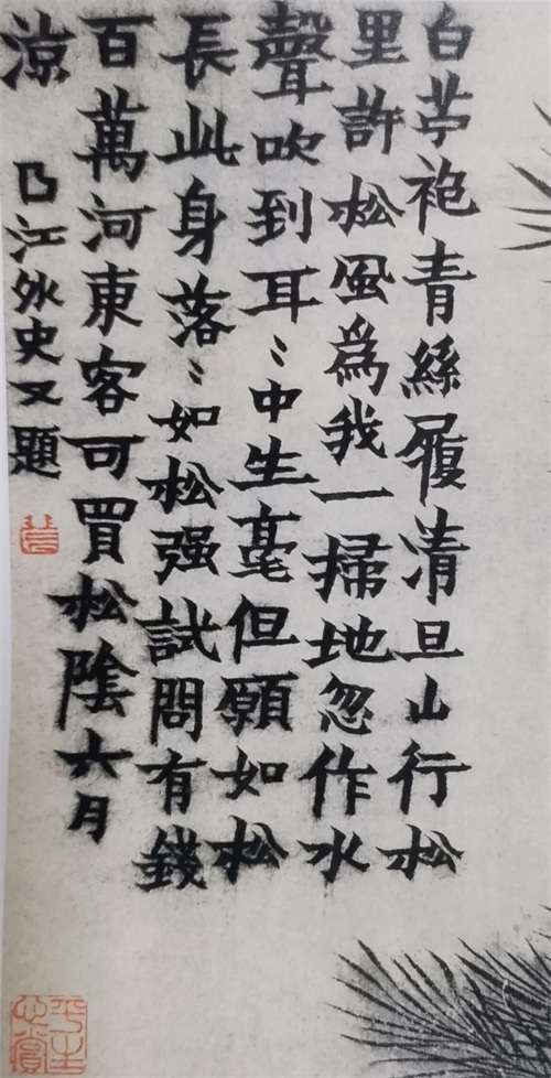 他首创的漆书,是一种特殊的用笔用墨方法。其楷书多隶意,用笔方扁,圭角时露,结体无拘无束,一任自然,可谓独出机杼,遗世独立。书中每露隶意,用笔虽扁平方拙,但粗细正侧颇具变化,在中国书坛,一枝独秀,生面别开。