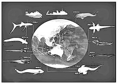 研究使用“探索一号”和“探索二号”科考船,我国自主研制的4500米级载人潜水器“深海勇士”号、全海深载人潜水器“奋斗者”号以及全海深着陆器“原位实验”号、“天涯”号等装备,通过对马里亚纳海沟、雅浦海沟、蒂阿曼蒂那深渊、瓦莱比-热恩斯深渊、西南印度洋热液、菲律宾海盆及南海等系列科考航次,覆盖几乎整个深海鱼类栖息深度范围(1218米至7730米)的科学考察,获得6大典型深海鱼类类群、共11种深海鱼样本,其中6种生活在超深渊带(>6000米)。
