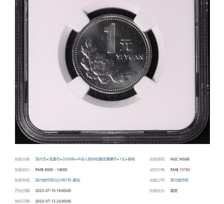 今天给大家看的这枚价值过万的2000年牡丹壹圆,也是一枚状态非常好的,经过美评NGC认证也是得到了一个最高分数,冠军分对于钱币价值的影响还是非常大的,普通的2000年牡丹壹圆可能也就一两千左右,但是像这种品相非常好的,价值就可以过万,虽然同级别的有60枚,但这枚毕竟也是冠军分,大家都不相上下,因此过万也是可以的了!