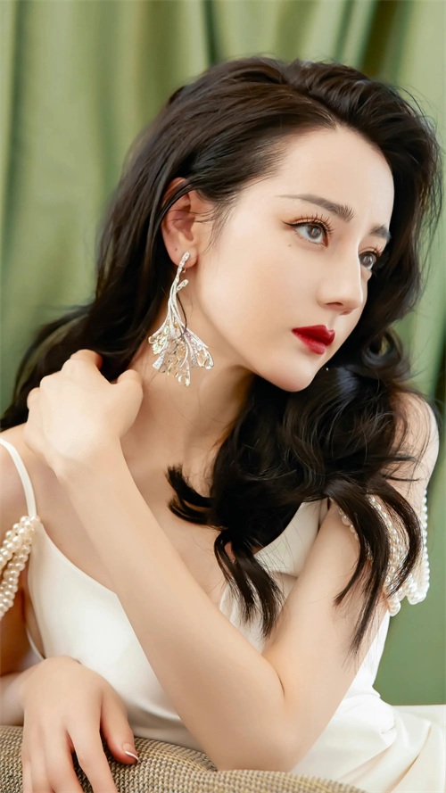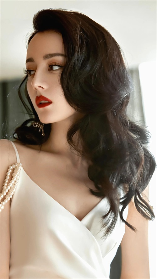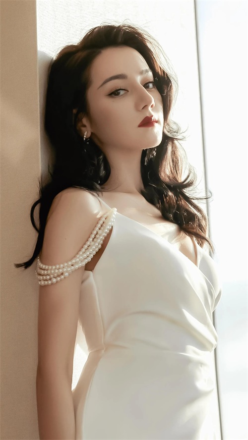 迪丽热巴纯白绸缎礼服高清写真