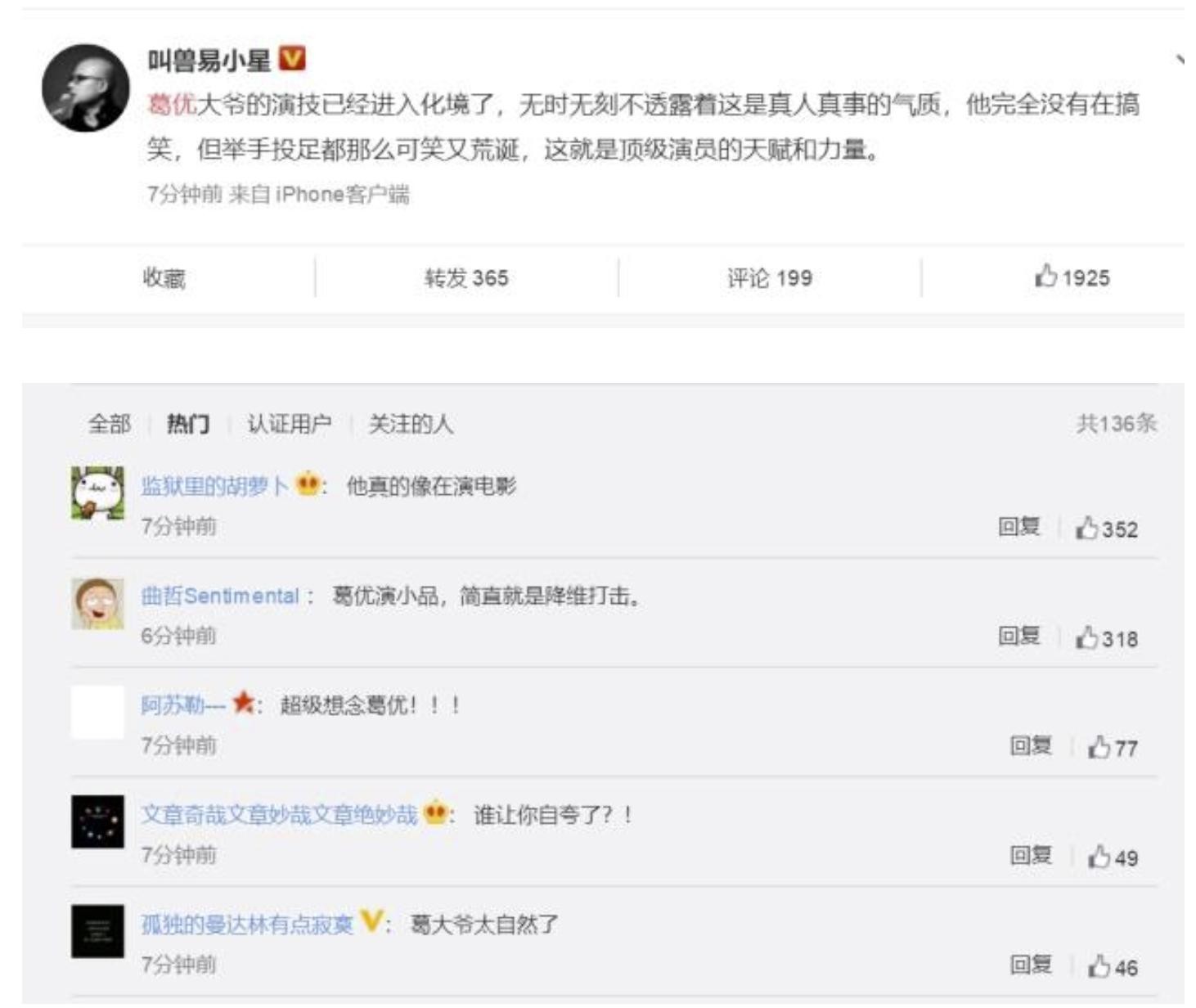 春晚开场短片阵容极其豪华,葛优依然吸睛且亮眼。虽然说是开场短片,仅仅几个镜头,举手投足,作为喜剧大腕,葛优的确是“喜感十足”。