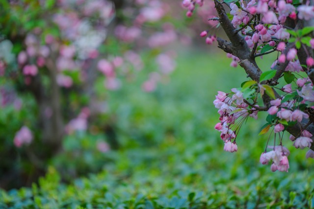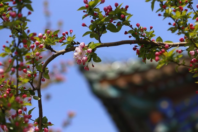 枝间新绿一重重, 小蕾深藏数点红。