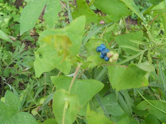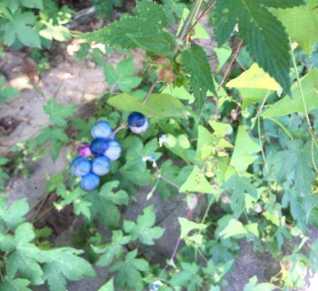 杠板归,它的果实可呈蓝色、紫色、绿色,生长出来也很有意思,与别的果实不同,它的果实像田里的麦穗一样结在叶尖,一簇一簇的,单果和蓝莓大小差不多,,吃上一口透心底的酸中隐藏着甘甜,会让你体会到别有一番滋味,让你口水直流,却依然还想再吃一粒。