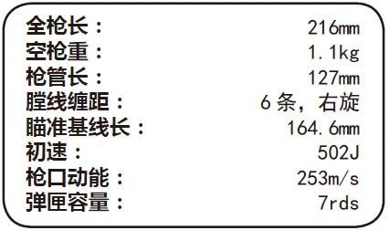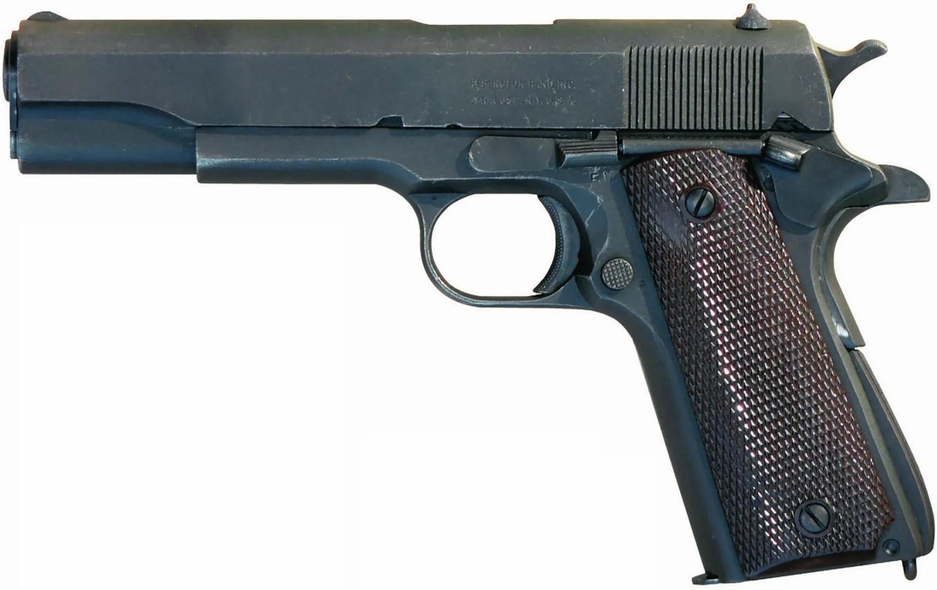 在1911 年3 月29 日,由勃朗宁设计,柯尔特公司生产的11.43 毫米口径半自动手枪被选为美军部队的制式辅助武器,并正式命名为“柯尔特1911 型”(Colt, Model 1911, Caliber .45 ACP),“ACP”表示“柯尔特自动手枪”。在最终形式中,M1911 是后膛闭锁、单动击发的半自动手枪,发射11.43 毫米口径弹,弹匣容量7 发,空枪重是1.1 千克,全长209 毫米,全高133 毫米,固定瞄准具,不过照门所在的楔形槽允许照门左右微调。手枪最后进行烤蓝处理,并采用有网格纹的木质握把侧片。
