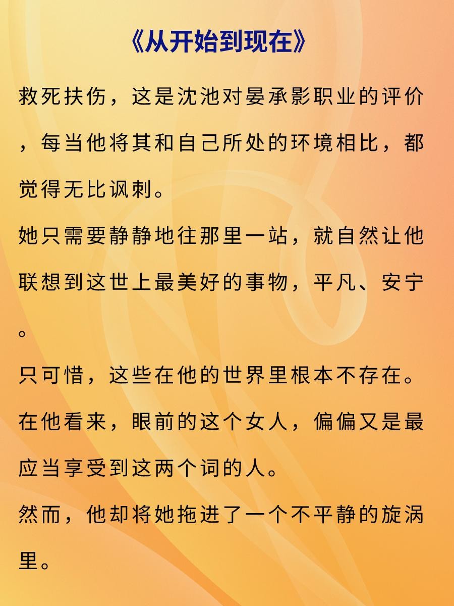 从开始到现在,越是相爱,就越是伤害。但沈池把宴承影当成挚爱,在最糟糕的时候也不曾放弃过。两人的相遇并不算美好,沈池当时受了伤,承影帮他包扎好了伤口,后他成了她的代课老师,再到后来的重逢……明明似乎已经分道扬镳的两个人,却还是走到了一起。
