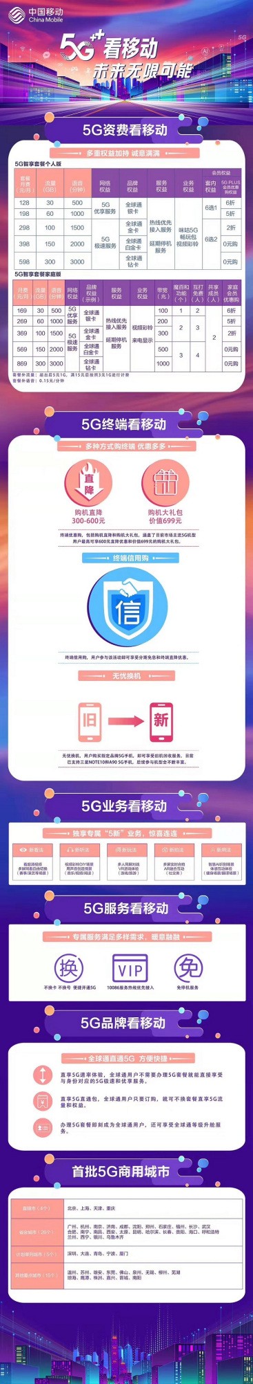 三大运营商5G套餐详情出炉:资费128元起,最高869元