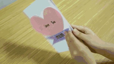 14.粘好后,就可以展开贺卡,可以再剪一些绿叶贴上做为装饰,在封面写上祝福。