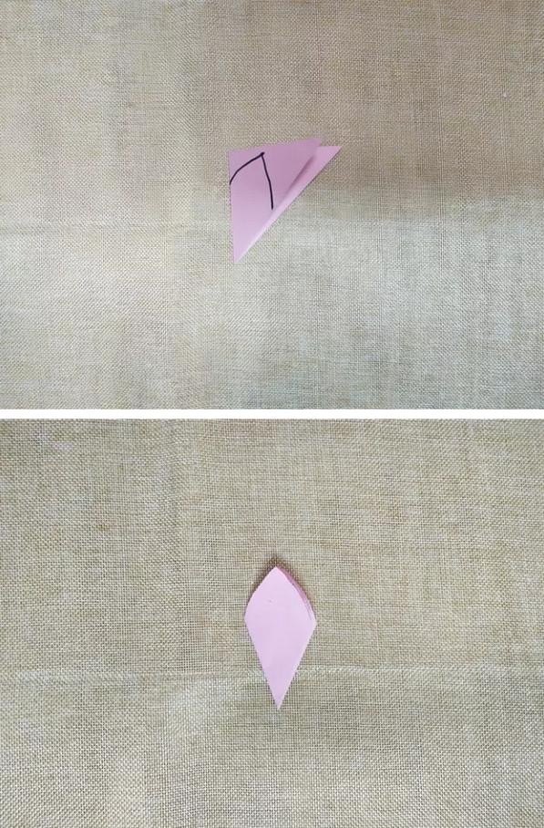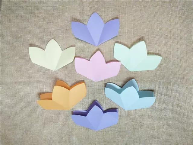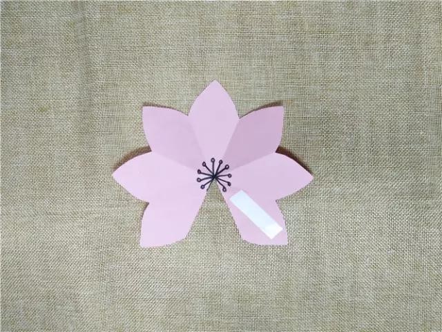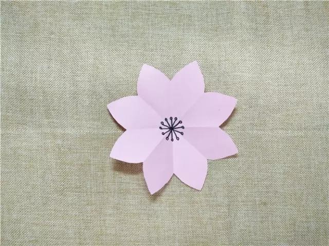 5.把剪开后相邻的花瓣粘起来,一朵花就做好啦,最后将花朵对折压平。
