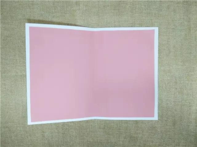 12.取一张比A4白色卡纸稍小的粉色彩纸贴在白纸上,记住,四边都有一些留白。