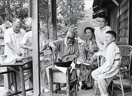 50年代,蒋介石与宋美龄以及孙辈们到桃园县角板山野餐