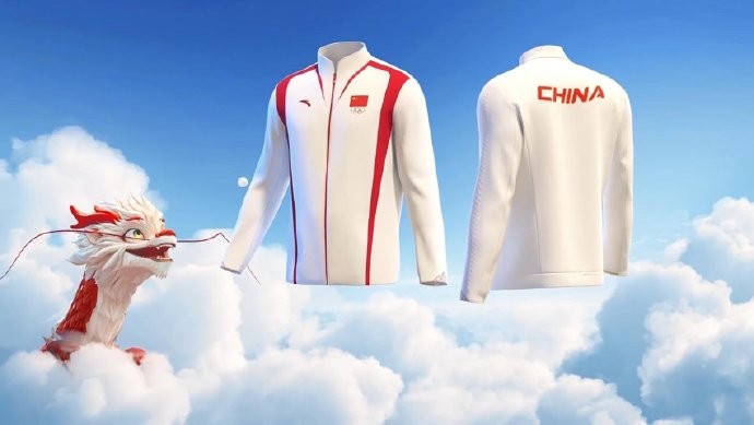 “冠军龙服”采用经典的中式版型和留白主色调设计,融合了龙鳞、龙须等传统“龙”元素,通过压花、拼接和刺绣等工艺,