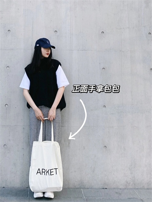 正面站立拍照,不知道摆姿势,可以让自己的双手自然搭在包包上,侧颜面对镜头,既能展示出包包的设计,又能突出双腿的纤长,营造出自信和时尚的氛围,也是又美又好看的。