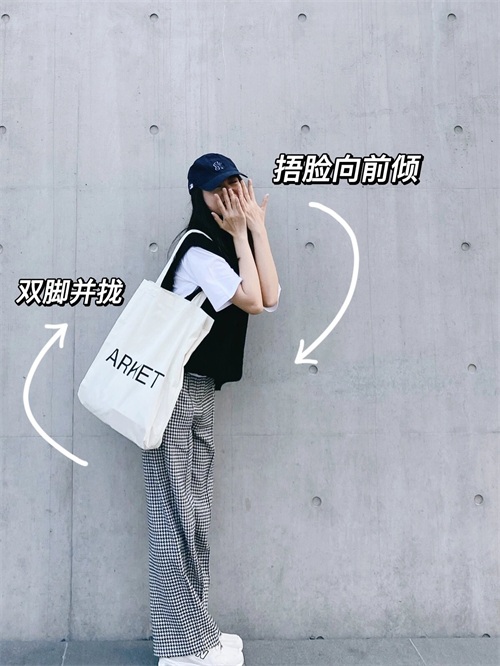 站立拍照,可以侧身双脚并拢站立,双手轻轻捂住脸颊,身体自然向前倾斜。这个姿势不仅能够突出面部的手和开心表情,还能展现出一种俏皮可爱的氛围,同时凸显出腿部的修长感。