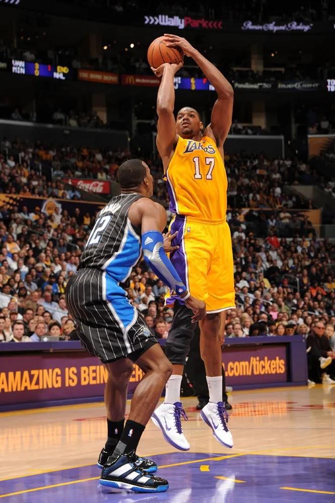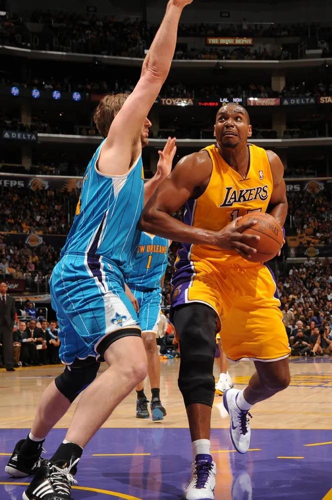 新秀赛季拜纳姆场均贡献1.6分1.7篮板0.5盖帽,对于年仅18岁的孩子来说显然要慢慢适应NBA,但是湖人队保持了足够的耐心去培养他,因为他的身体条件、年龄有非常大的潜力去挖掘。06-07赛季拜纳姆已经慢慢展现出首发的能力,场均7.8分5.9篮板1.56盖帽,继续稳步成长,07-08赛季场均13.1分10.2篮板2.1盖帽的出色数据,但是因为伤病缺席了一半的常规赛和所有季后赛。08-09赛季随湖人队在季后赛一路过关斩将打进总决赛,对阵“魔兽”霍华德领衔的魔术队,拜纳姆直接对位霍华德,虽然拜纳姆数据并不出色,但是在防守霍华德上面做的还不错,最后4:1击败魔术队,拜纳姆获得生涯第一个总冠军。09-10赛季湖人队开启卫冕之路,拜纳姆场均15.0分8.3篮板1.0助攻1.4盖帽,季后赛再一次杀进总决赛,对阵老冤家凯尔特人队,双方身体对抗及其激烈,针尖对麦芒,除了科比湖人队“三高内线”加索尔、拜纳姆、奥多姆也奉献了出色的表现,一直打到抢七大战,湖人队最后4:3干掉凯尔特人获得两连冠。11-12赛季是拜纳姆的巅峰赛季,场均18.7分11.8篮板1.4助攻1.9盖帽,得分、篮板都是生涯场均最高,成为西部最佳中锋,生涯首次入选全明星首发阵容、最佳阵容二阵。