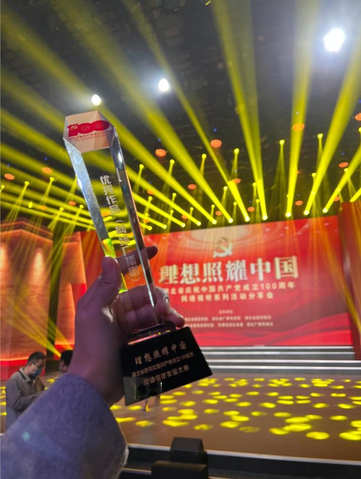 11月17日,由中共湖北省委宣传部、湖北省广播电视局、中共湖北省委网络安全和信息化委员会办公室、中共湖北省委党史研究室和湖北广播电视台联合举办的“理想照耀中国——湖北省庆祝中国共产党成立100周年网络视听作品大赛及全媒体大型传播行动”推优分享活动在湖北广电举行,襄阳广播电视台创作的网络广播剧《旗帜》获优秀作品奖。襄阳广维影视传媒有限公司制作的网络公益广告《宅家过年更安全》获好作品奖。