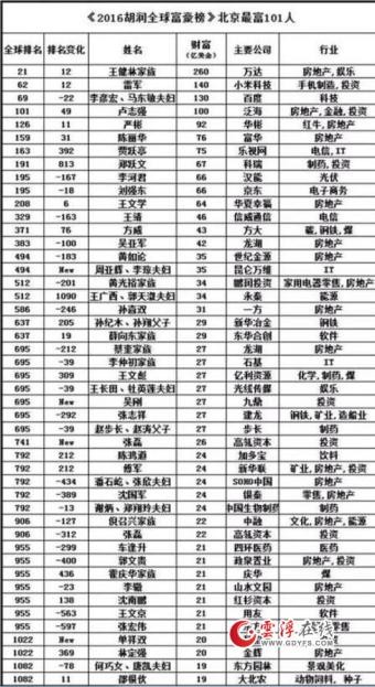 北京最有钱101人榜单