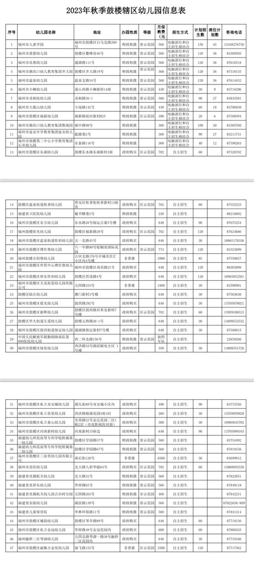(附幼儿园招生信息表)