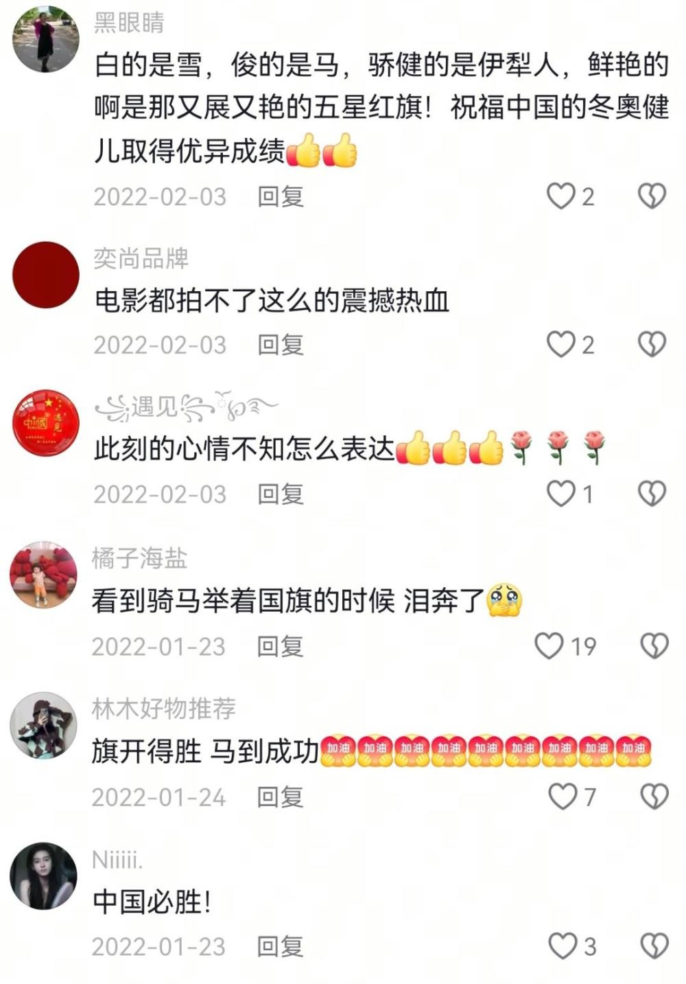 1500名当地群众自发聚集,与乘车离开的越野滑雪队依依惜别;22名牧民雪中策马、手擎五星红旗追逐车队的视频至今在网上随处可见。旗开得胜、马到成功!这真挚的祝福感动了亿万网友:“这是电影都拍不出的真情实感”“国旗出现的那一刻我破防了”……