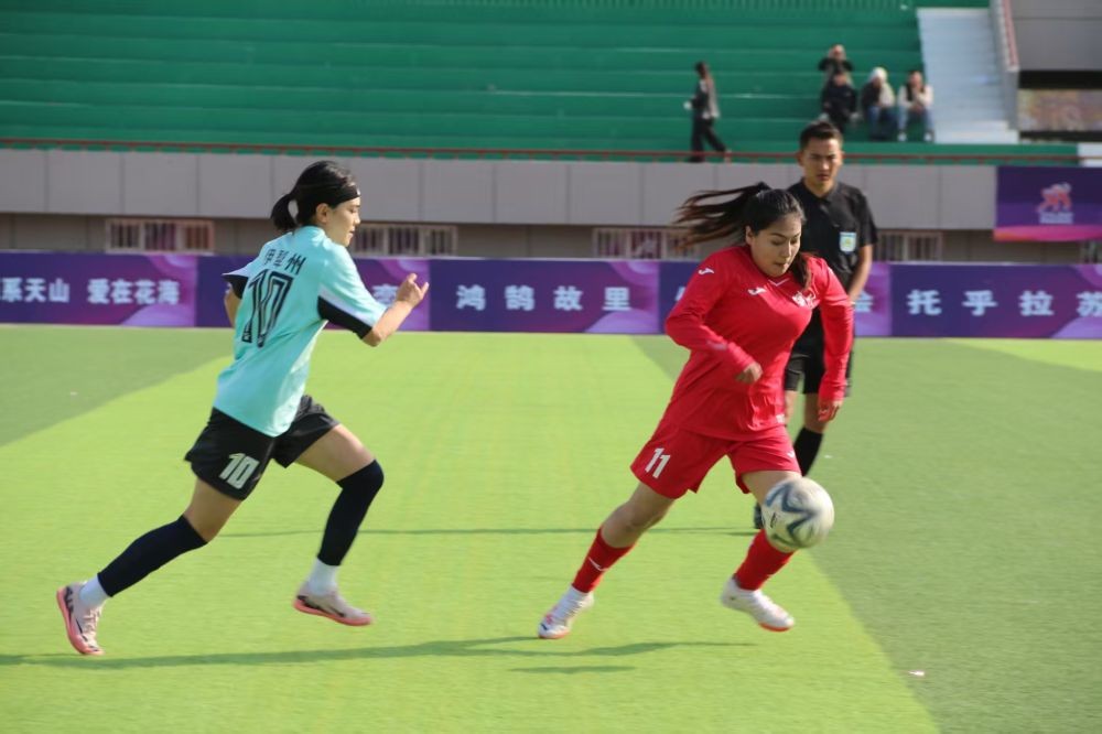 在2024年新疆群众“三大球”联赛总决赛上,喀什地区队获足球女子组冠军,伊犁哈萨克自治州女足获亚军。这是新疆首次举办成年女子11人制足球全疆比赛。喀什女足的苏比努尔·乌斯曼说,希望她们的夺冠,能吸引更多女生踢球,也希望以后新疆能有更多女足比赛。