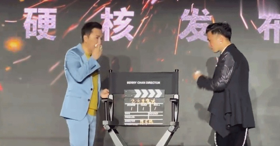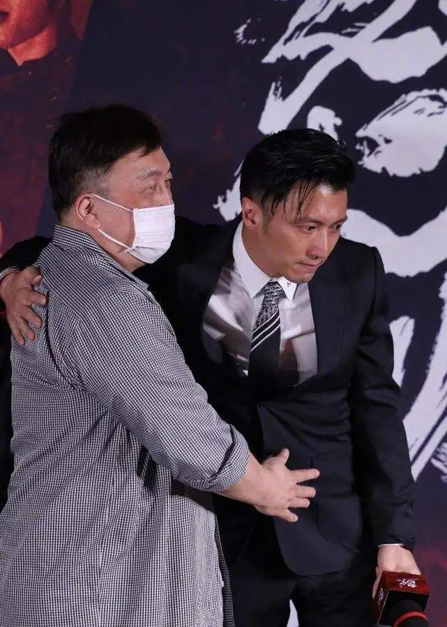 甄子丹和谢霆锋站在两旁,两个硬汉,忽然落泪。