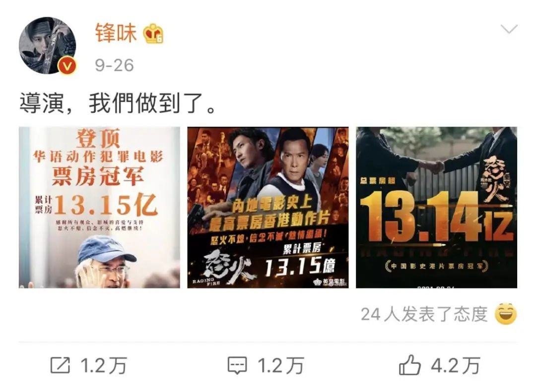 2020年,他拍了《怒火·重案》,像愚公移山一样去坚持。最终,这部电影创造了一个奇迹。