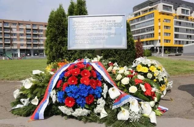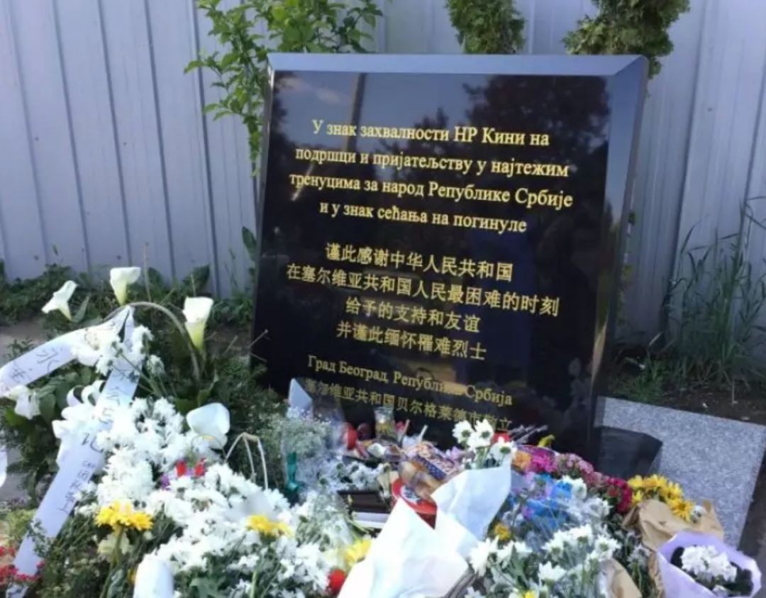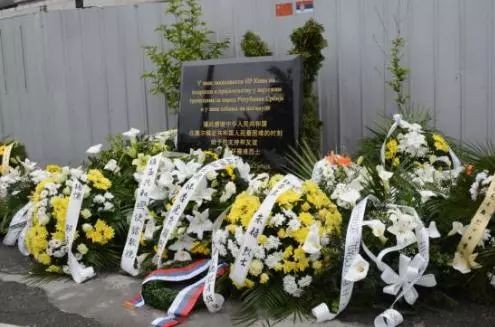 早晨起来,就看到网上的一张图片,当年被空袭的中国驻南联盟旧址纪念碑前,现在摆满了鲜花。