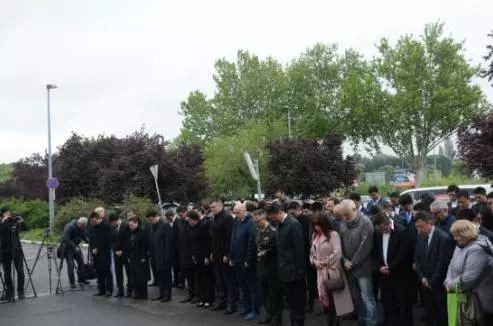 全体人员在纪念碑前肃立默哀