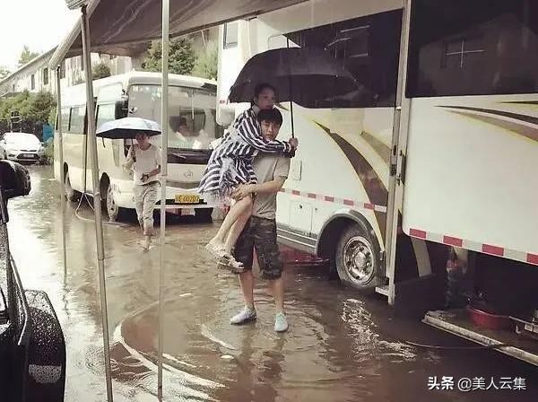 下雨天,为了让李小璐不湿脚,他抱着她过水坑。