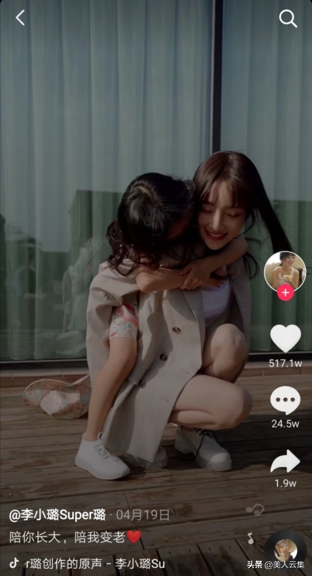 她有一个抖音号,名为“李小璐Super璐”,1000多万粉丝。李小璐常常在上面分享自己的日常,最经常的,就是晒她和甜馨的母女情深。