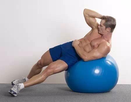 a.健身球上侧向卷腹