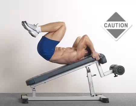 注意事项:①确保头颈部不用力。②不要让背部接触到下斜板。