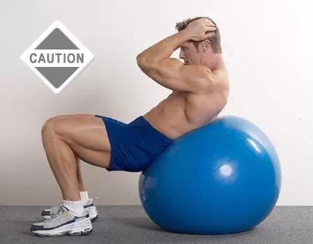 Tips:①在每一组动作前都要让身体更好的贴合在健身球上(意思是自然的躺在健身球上,不要绷直身体,让背部和球的弧线吻合),以增加动作范围和训练强度。②在动作顶峰,要保持腹肌的紧张,因此不要垂直的坐起,那样会让肌肉放松。③闭上双眼,这有助你提高平衡能力。④下落时尽量增加胸腔和骨盆的距离,上升时尽量让它们靠近。