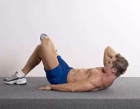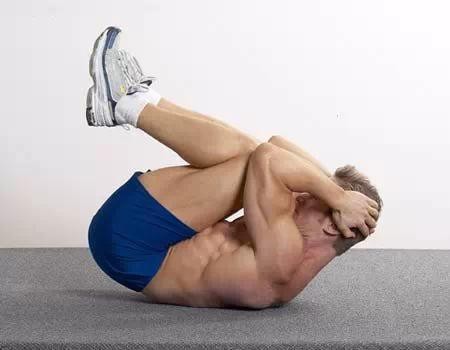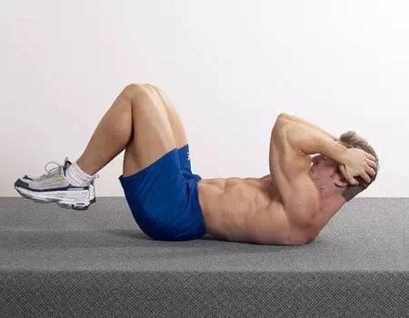 动作过程:然后聚焦上部腹肌,下背部贴紧地板,一边呼气一边缓缓使双肩向膝盖靠近。双肘指向双膝。随着肘部前移和内收,一寸一寸的收缩腹肌。
