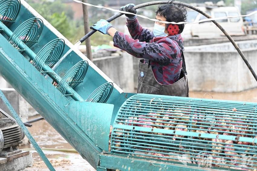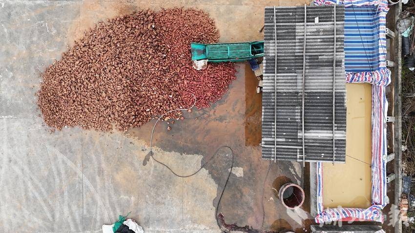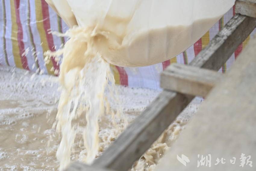 湖北日报客户端讯(通讯员王涛)长岭粉条是十堰市郧阳区一大特色产业。全区今年种植红薯7万亩,其中绝大部分用于提取淀粉制作红薯粉条,是郧阳特色小吃“郧阳三合汤”的主要原材料之一。长坪村是长岭红薯粉条的核心产地,多年来,该村制作的手工红薯粉条俏销十堰及周边市场。一个红薯经过清洗、粉碎、两次以上过滤、脱水、晒干、勾芡、和粉面、漏粉、晒粉等20多道工序才能制作出来红薯粉条,这些工序大部分需手工完成。11月10日,郧阳区茶店镇长坪村农民在洗红薯制作红薯淀粉。