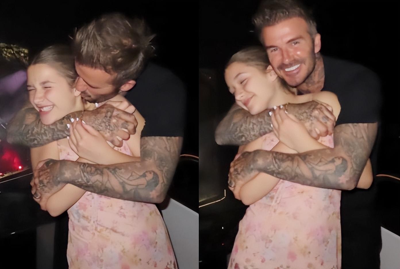 贝克汉姆搂抱13岁小七引争议,父爱如山和行为过界?网友:难接受