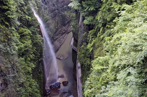 恩施大峡谷景区云龙地缝两岸陡峭,飞瀑狂泻、缝底流水潺潺,上通天水暗河,下联莽莽清江,因其美景及地质形成独特性而谓为恩施大峡谷一大奇观。在云龙地缝出口处,近期新添一道风景线——“小蛮腰”型观光电梯。