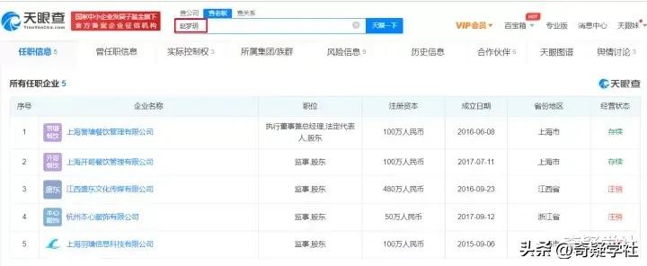 现在仍为存续状态的公司是两家餐饮公司,分别由赵梦玥以及传闻中赵梦玥的父亲赵鸣和表弟段兆熙持股。