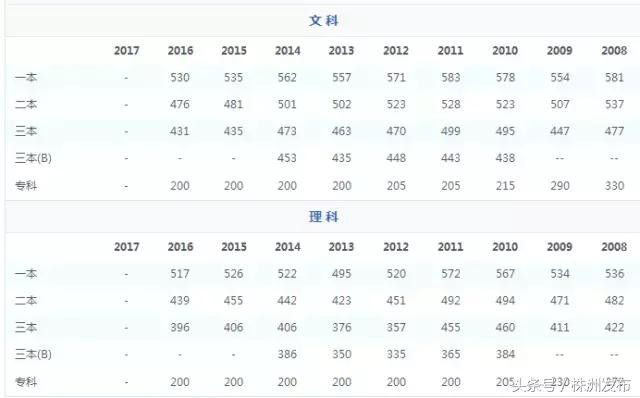 湖南高考历年分数线线汇总: