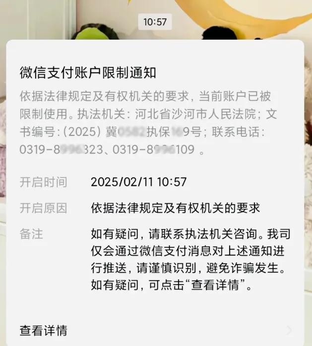 比如微X,先登录微X支付,打开钱包,再打开帮助中心,查看冻结账户,查看被冻结金额和法院信息。也可以联系上面的留的信息,打电话确认。
