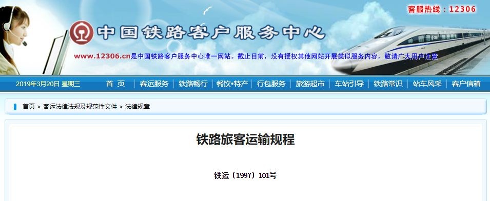根据12306官网列出的《铁路旅客运输规程》铁运(1997)101号第二十条的解释:
