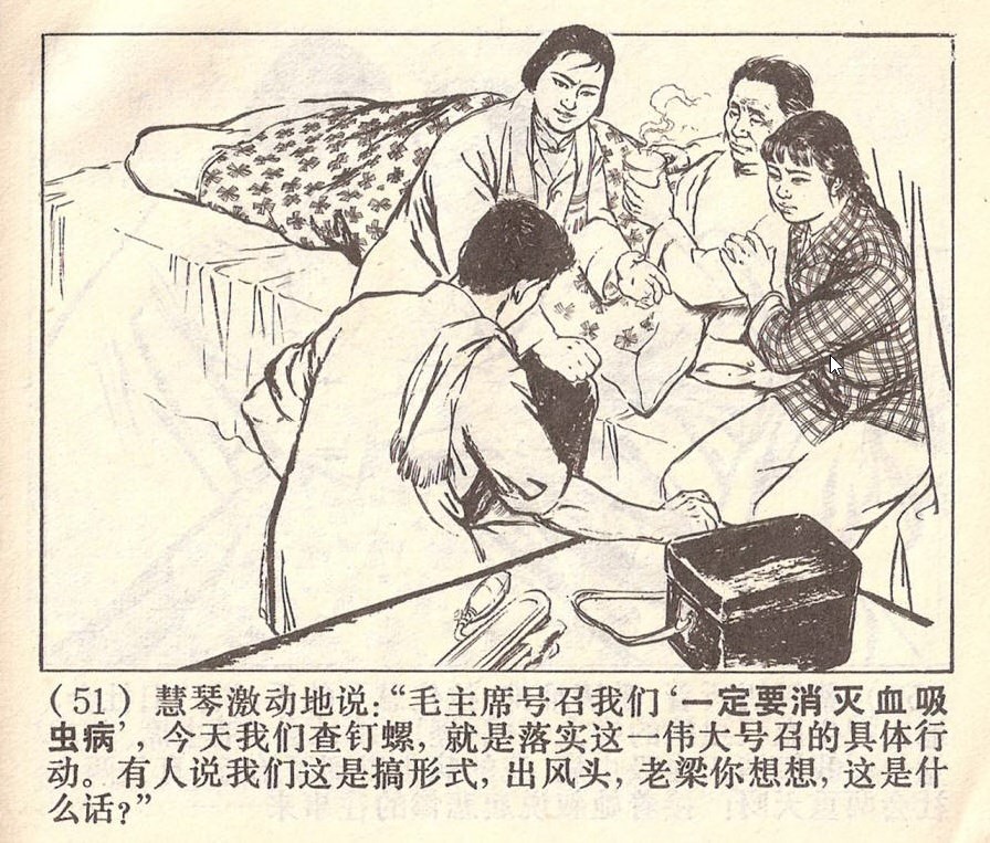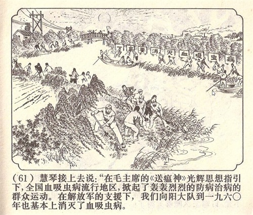 故事展现了大家在革命路线指引下,通过团结与坚持,战胜敌人的破坏,巩固了血防成果,并进一步开展联合防治工作。
