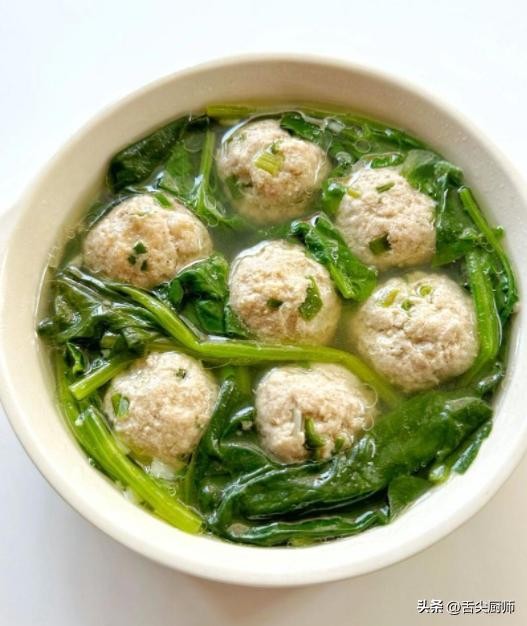 7. 调味和出锅:加入适量盐,调整味道,可以再撒一些葱花和白胡椒粉增香,继续煮2-3分钟即可。最后盛出汤和丸子,放在碗中,即可享用。