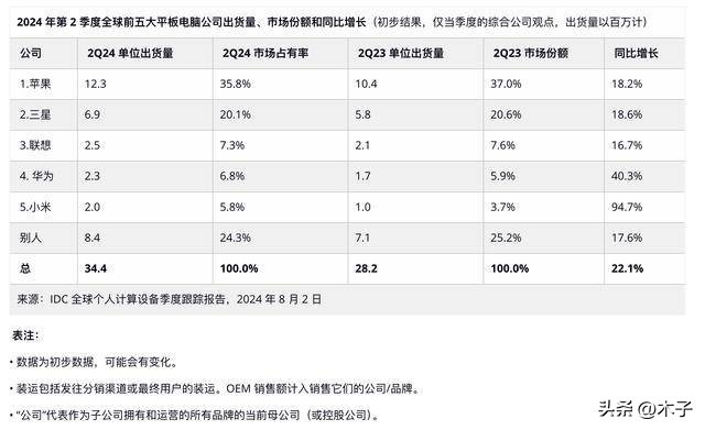 最近一组数据却狠狠地“打了脸”,权威市场调研机构IDC发布的最新报告显示,2024年第二季度全球平板电脑市场出货量不降反升,同比增长超过20%,仿佛一夜之间,平板电脑市场又“卷土重来”了