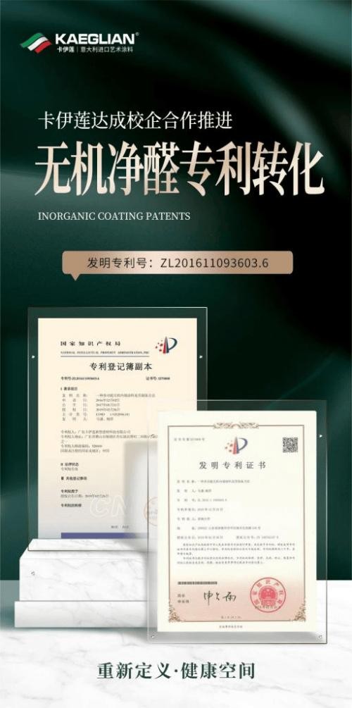 卡伊莲校企专利合作,打造无机净醛艺术涂料,树立行业环保新标杆
